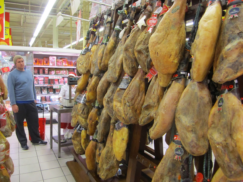 | Todd is checking out the jamón. A whole leg costs anywhere from 60-80+ Euro! |